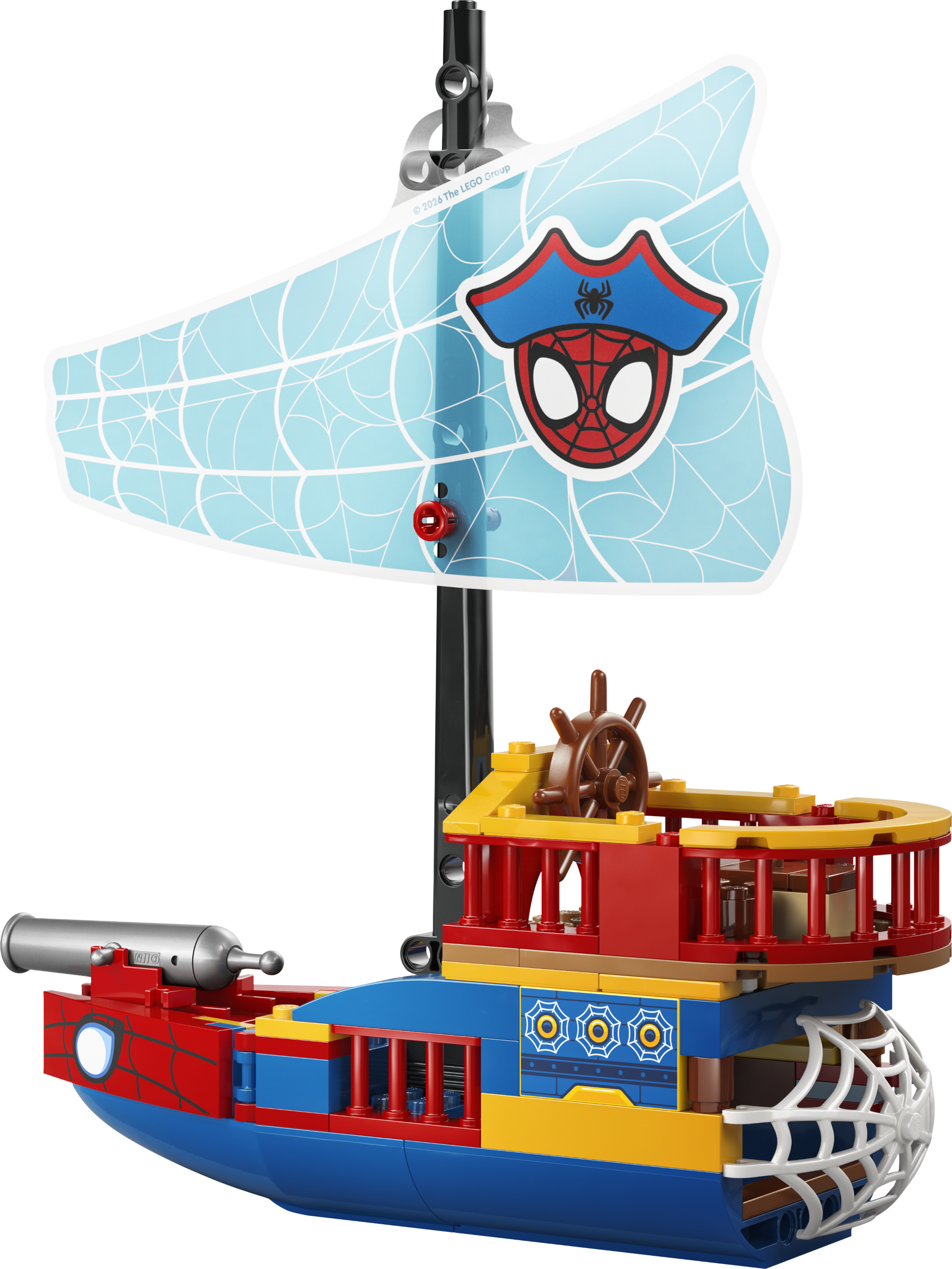 4 minifiguuri – Liitu Spidey, Ghost-Spideri, Miles „Spin“ Moralese, Green Goblini ja Trace-E-ga, et piraadilaeval, Spideri saarel ja kahel väikesel paadil selles põnevas ehitusmänguasjas lõbutseda