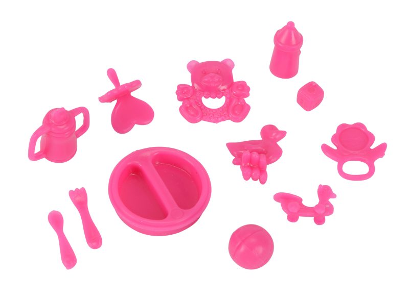 Võluv Evi toidab lutipudeliga beebinukku. Beebi mängib rahulikult oma mänguasjadega, samal ajal kui Evi viib teda jalutuskärus jalutama. 12-osaline komplekt on ideaalne rollimängudeks, mis panevad väikeste tüdrukute fantaasia tööle.
