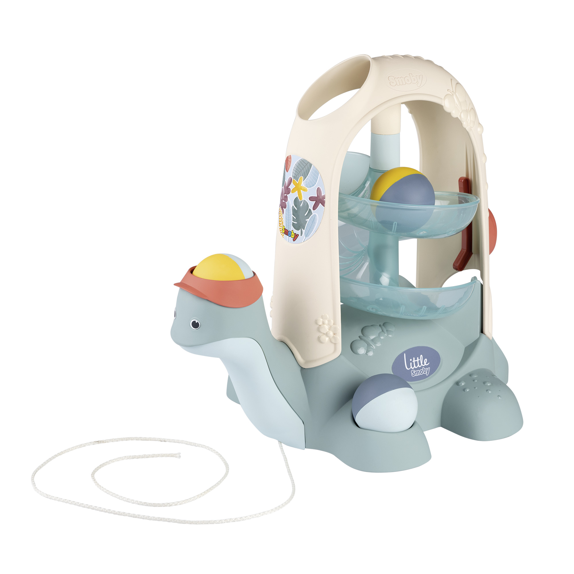 1)Interaktiivne pallirada, mille juurde kuulub 2 värvilist palli. Beebi saab asetada pallid kilpkonna sisse ja vaadata, kuidas need mööda liurada all veerevad ja kilpkonna sabast välja tulevad. Rajal on ka peatamismehhanism, mis võimaldab pallide väljumise peatada, lisades sellega mängule üllatusmomendi.