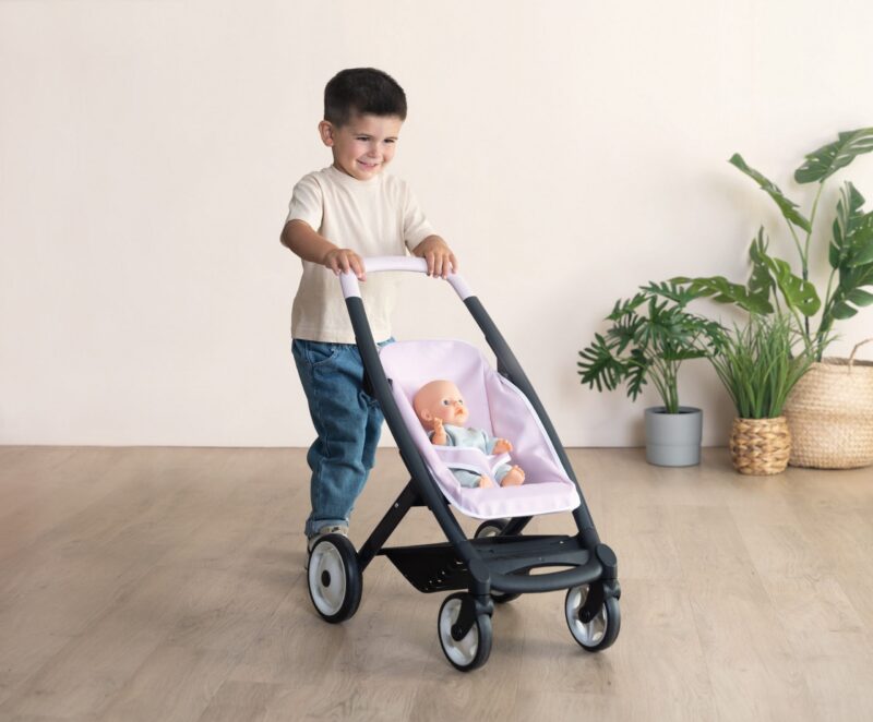 Nukuvankri katted on valmistatud vastupidavast plastkangast, mida saab hõlpsalt niiske lapiga puhastada. See vankrikomplekt aitab lastel arendada hoolivat käitumist, tugevdab loovust ja julgustab koostööoskust sõprade ja perega. Kerge ja hõlpsasti juhitav – sobib ideaalselt nii tuppa kui ka õuemängudeks.