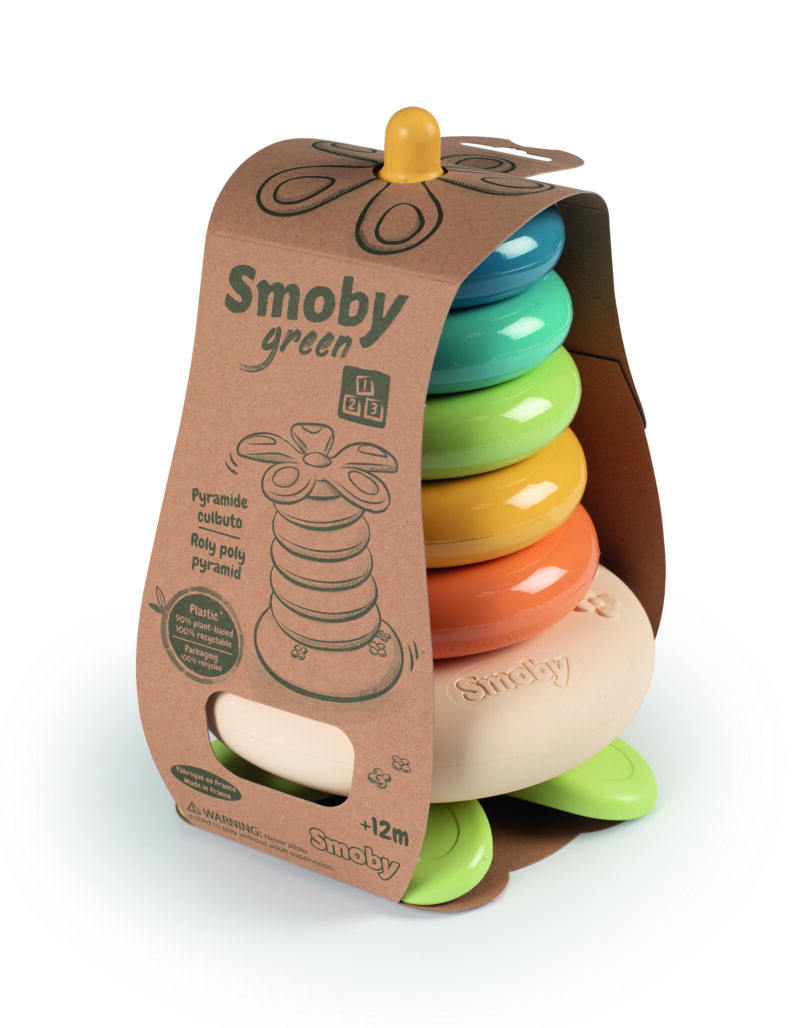 90% taimsest plastikust (suhkruroost) koosnev Smoby püramiid õpetab lapsele värvide äratundmist ja koordinatsiooni.