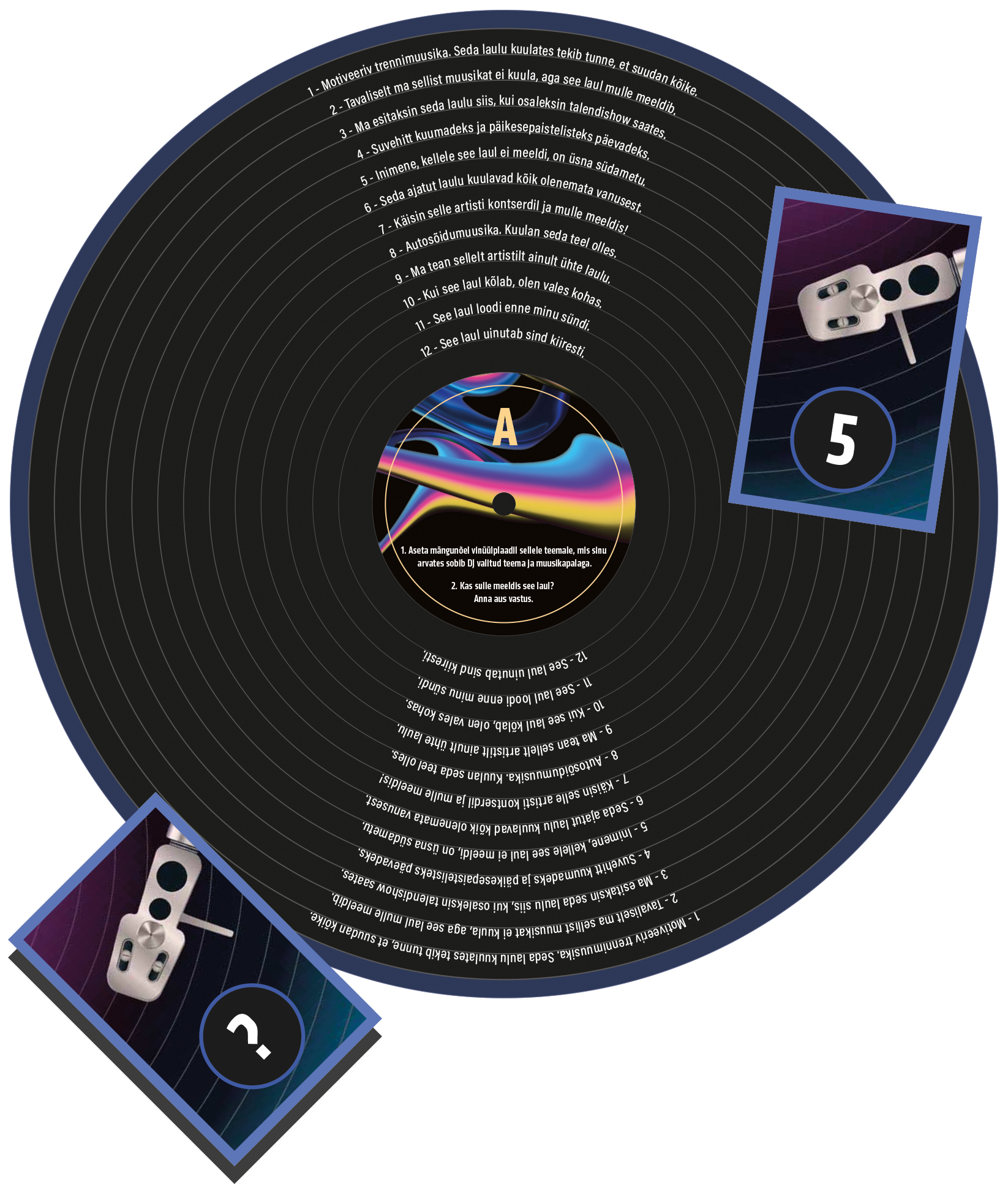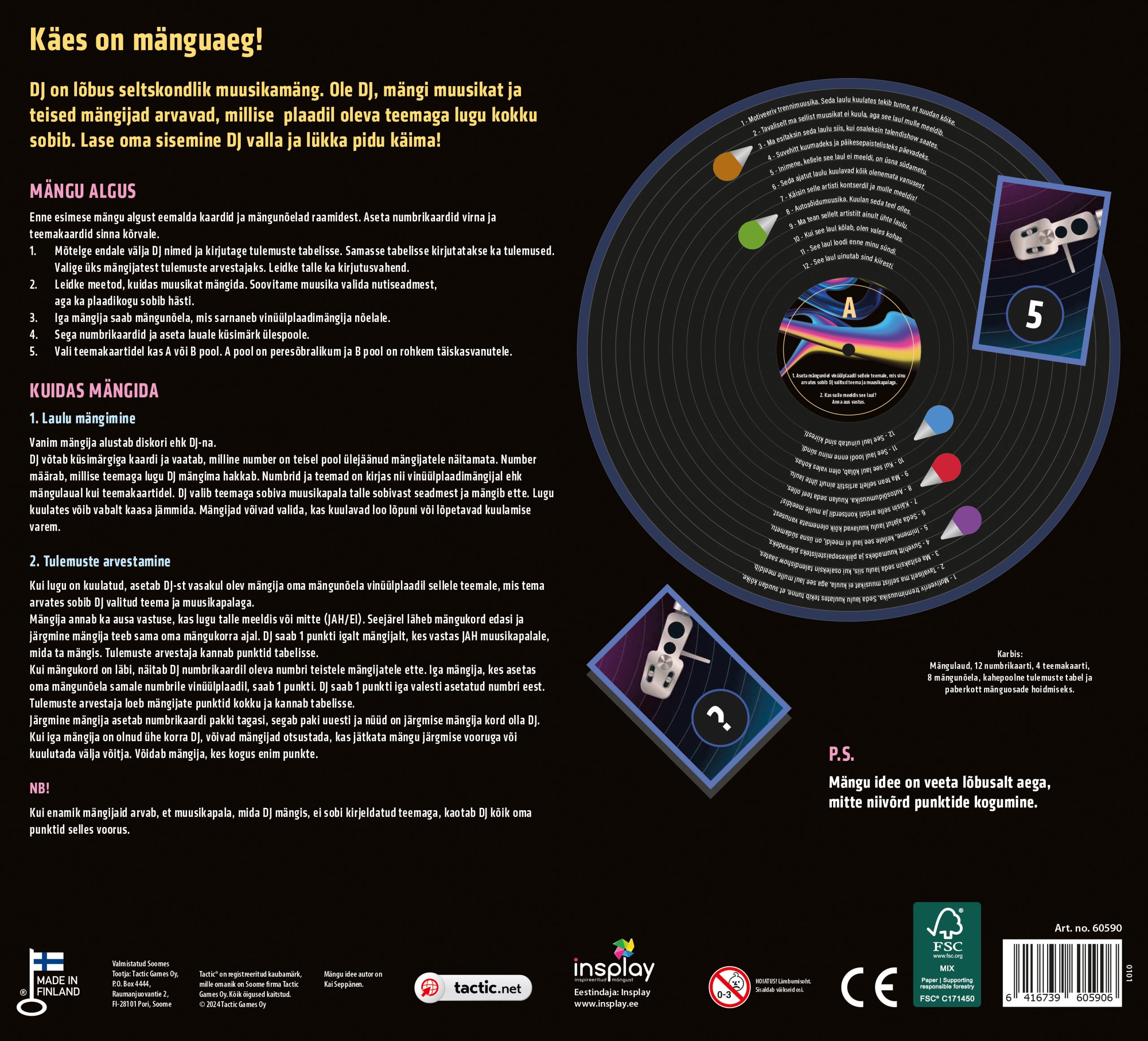 Käes on mänguaeg! Ole DJ, mängi muusikat ja teised mängijad arvavad, millise plaadil oleva teemaga lugu kokku sobib. DJ peomäng muusikaga pakub elavat ja muusikaküllast kogemust, mis on nii sotsiaalne kui ka oskusi arendav.