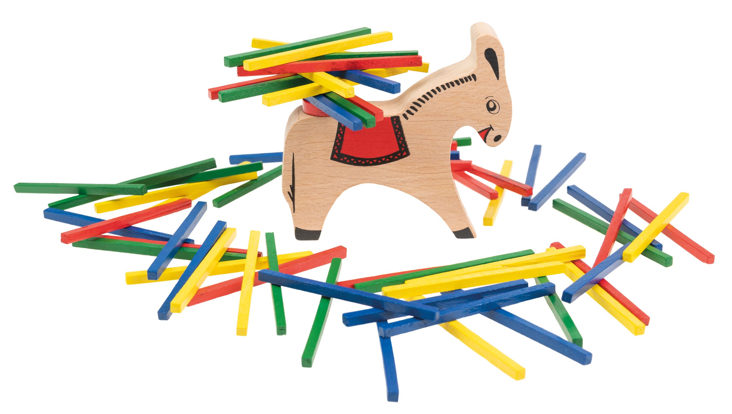 Mängukarp sisaldab: 60 puidust pulka, (neljas eri värvis), puidust eeslit ja reeglid.