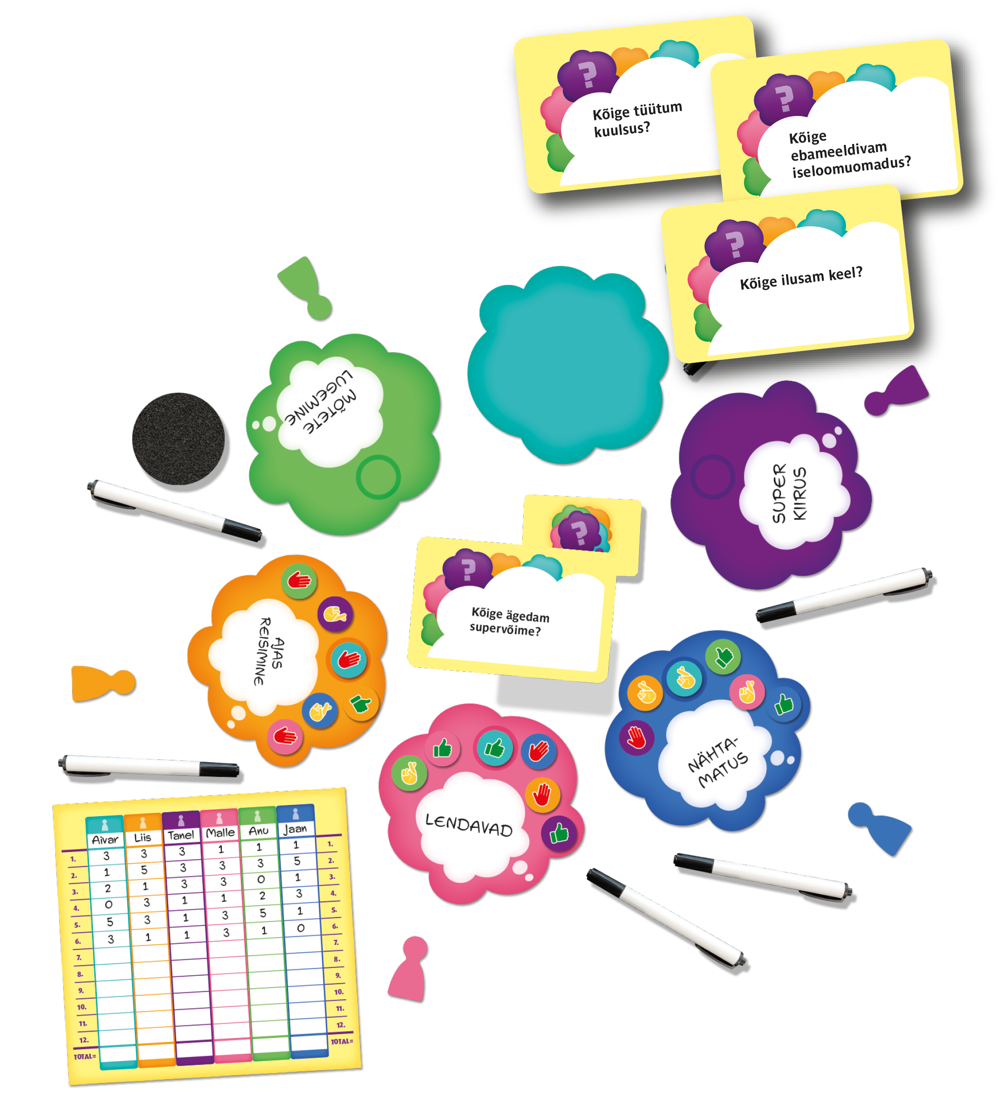 Loe küsimus ja kirjuta oma vastus üles – aga hoia see saladuses. Seejärel esitavad teised mängijad oma pakkumised ning sina saad hinnata sümbolitega mängumärkide abil: Parim, Halvim, Peibutis. Milline vastus on sinu omale kõige lähemal ja milline jääb hoopis kaugeks? Ära unusta ka veidi segadust külvata – tõeline telepaatia ei tule lihtsalt! Seejärel peavad teised mängijad su mõtteid lugema ning mõistatama, kuidas samastuda sinu valikutega.