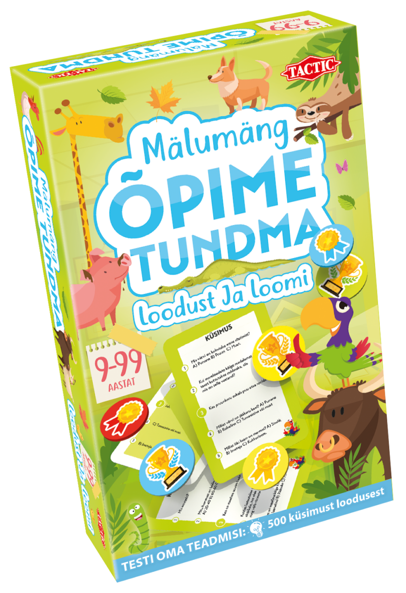 Testi enda ja sõprade teadmisi. Tacticu mälumängus Õpime tundma loodust ja loomi on 500 küsimust, mis esitavad väljakutse igas eas mängijale. Kuidas kutsutakse seda halastamatut röövkala, kes elab Amazonases ning võib rünnata isegi inimesi? Kes on maailma kõige kiiremini lendav lind? Mis on rosin? Jõua uuele tasemele punkte kaotamata või otsusta mitte vastata, kui sa täpselt ei tea.