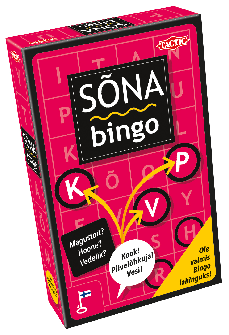 Võta kaart ja mõtle välja sõna, mis sobib teemaga ja algab tähega sinu mängulehel – seda senikaua, kuni liivakellal aeg peatub. Kas sul jätkub närvi, et moodustada viiest ringist rida mängulehel ja hüüda “Bingo!” enne teisi mängijaid.