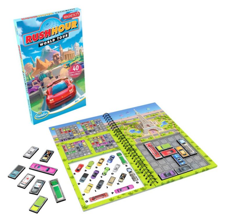 Mugav pakend kaasa haaramiseks, et mängida ja treenida mõistust kas lennukis, rongis või lihtsalt kohvikus sõpradega aega veetes. Magnetelemendid lisavad põnevust, muutes iga manöövri kaasahaaravaks. Rush Hour World Tour Magnetics Travel Puzzle paneb proovile probleemide lahendamise oskused ja hoiab meelt teravana, et vallutada linnade liiklusmõistatusi kogu maailmas. See mäng tagab lõbu ja meelelahutust pikaks ajaks. Nii et pakkige kotid, kinnitage turvavöö ja valmistuge Rush Hour World Touri maailmatuuriks.