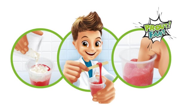 3) Lisa üks pakk limapulbrit ja sega segamispulgaga energiliselt. Jäta seisma 5. minutiks ja pärast seda on lima valmis. Kui jääb tükki, siis suuremad tükid võid eemaldada segamispulga abil. Need võivad kaduda mõne tunni pärast või siis kui mudid lima vähe kauem. Lima võib hoida kaasasolevates hoiupurkides, või külmakottides (pole lisatud). Valmis lima säilib nädal aega.