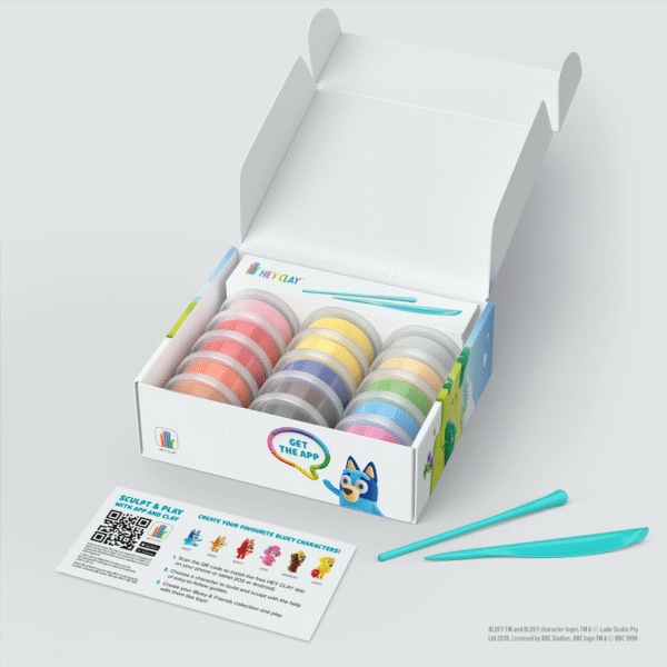 HEY CLAY voolimismass "Bluey ja sõbrad" on ideaalne voolimiskomplekt lastele, kes armastavad käelisi tegevusi ja loovat mängu. Need lõbusad ja värvikad voolimismassid on justkui plastiliinid, mis võimaldavad lastel ellu äratada oma lemmik Bluey tegelased, uurides samal ajal erinevaid tekstuure ja kujundeid. Pehmed, ohutud ja mittetoksilised voolimismassid, mida on lihtne vormida, segada ja uuesti kasutada lõputute loovate projektide jaoks. HEY CLAY on voolimismass, mis erinevalt plastiliinist ei määri pindu, riideid ega jäta rasvaseid jälgi. HEY CLAY samm-sammult juhendatud rakenduse abil saavad lapsed kas õpetust järgida või ise oma disaine luua, muutes mänguaja nii lõbusaks kui ka harivaks tegevuseks.
