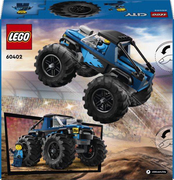 • Monster auto ehituskomplekt – selle LEGO® City sinise Monster auto mänguasjaga saavad lapsed anda suurepäraseid sõiduetendusi
