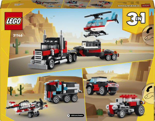 • 3 sõidukikomplekti ühes karbis – 7-aastased ja vanemad poisid ja tüdrukud saavad selle LEGO® Creator treilerauto koos helikopteriga ümber ehitada kolmeks komplektiks, kasutades samu klotse
