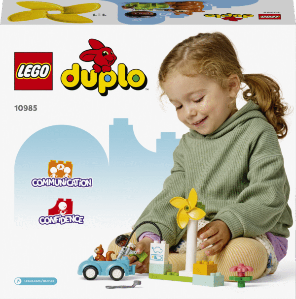 LEGO DUPLO linn – tuuleturbiin ja elektriauto (10985) laeb väikelaste mänguhetked loomingulise tegevusega.