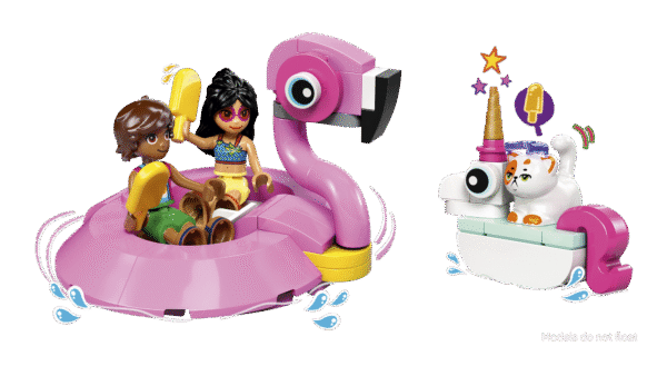 See ehituskomplekt on täis mänguvõimalusi, kui lapsed sukelduvad LEGO® Friends ükssarviku ja flamingo basseinipeol (42658) lugude jutustamisse.
