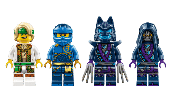 • 4 NINJAGO® minifiguuri – selle ninja ehitusmänguasjaga on kaasas Jay, ainulaadne isand Lloydi minifiguur, Hundimaskis küünisesõdalane ja Hundimaskis valvur