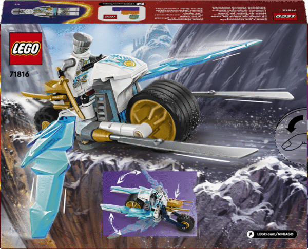 • Ninja mootorratta mängasi lastele – 7-aastased ja vanemad poisid ja tüdrukud saavad selle Zane’i jäämootorrattaga mängida telesarjaNINJAGO® Dragons Rising 2. hooaja kiiret tegevust