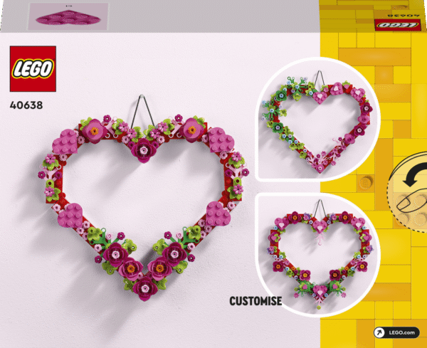 • Armastuse tähistamine – vanemad lapsed, kellel on kirg tähendusrikka sisekujunduse vastu, saavad ehitada LEGO® südamekujulise ornamendi (40638), mida saab riputada aknale, seinale, uksele või kinkida kellelegi, kellest nad hoolivad